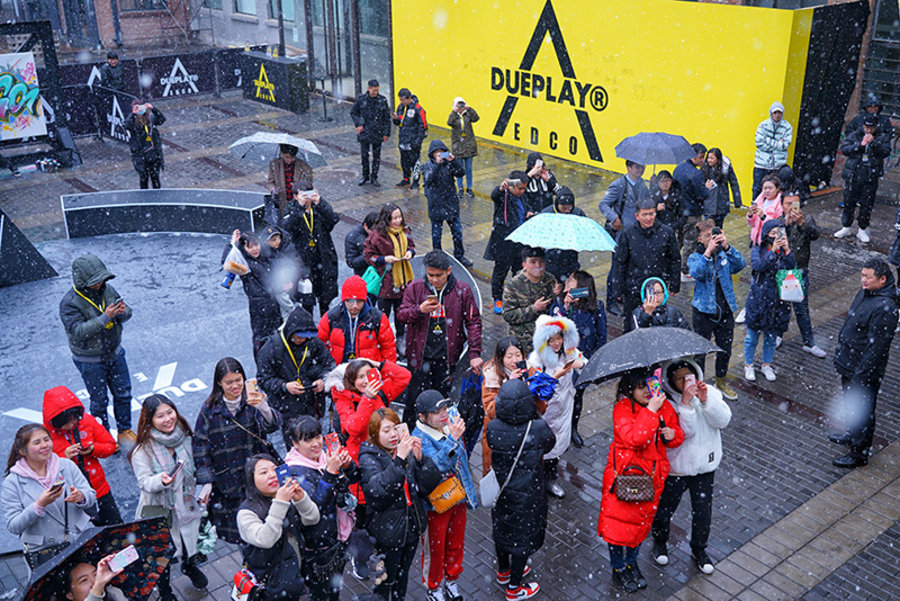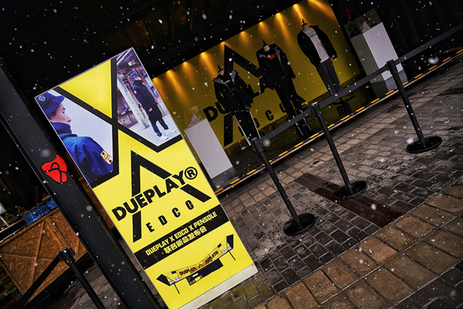 今早北京突然降下的大雪,但丝毫没有使粉丝的热情冷却,迎着大雪来到现场只为一睹 DUEPLAY 与 EDCO 联名盛况!