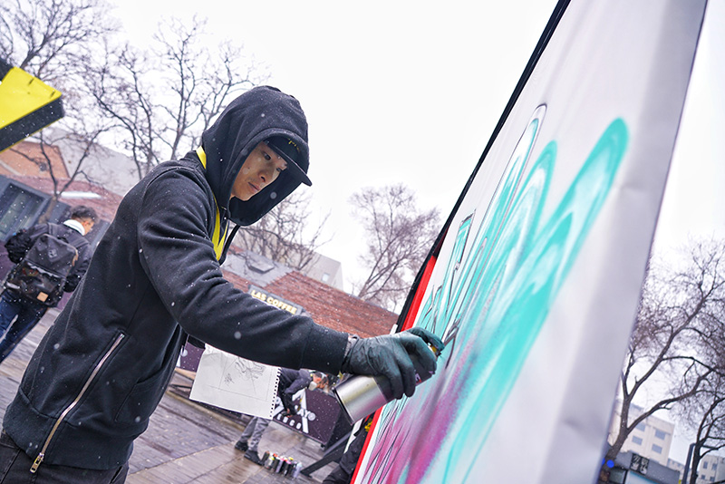 除了品牌潮流产品的发布,当天的活动也在 Destroyer Box 为打响了全国涂鸦大赛的第一炮,吸引了众多涂鸦爱好者到场参与,他们手中的喷罐就是画笔,以机能为焰心点燃整块画板!各位参赛选手相互竞争比拼,粉丝们则为他们加油鼓劲,并在最后决出北京站的冠军!