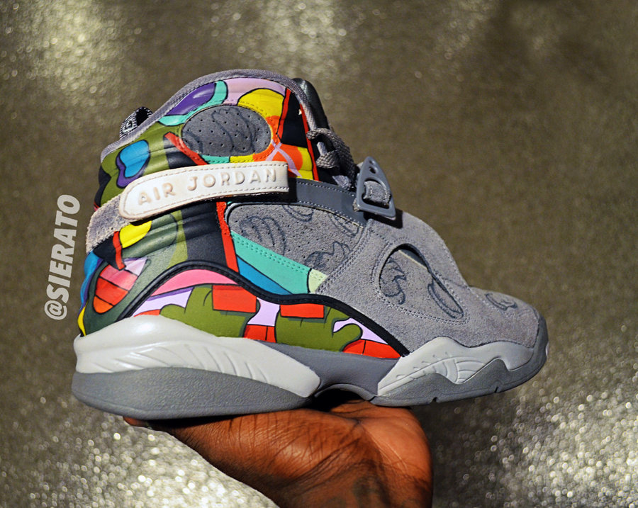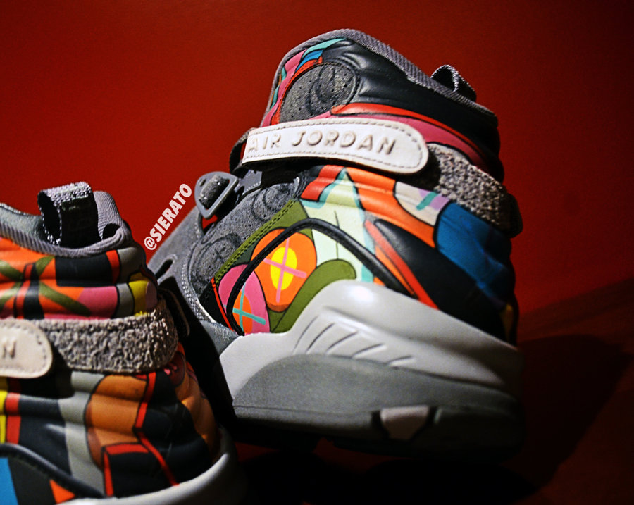 近日,在 Instagram 上一款 Air Jordan 8 吸引了大多数球鞋爱好者的关注度! 这双 Air Jordan 8 根据著名的涂鸦大师 KAWS 为灵感,前半部灰色麂皮材质带有标志性的 Companion 图案,而后半部分则由缤纷的糖果色进行渲染! 这双 “KAWS x Air Jordan 8” 实际是球鞋爱好者定制而成,并不会进行市售!