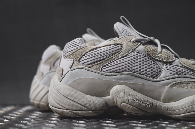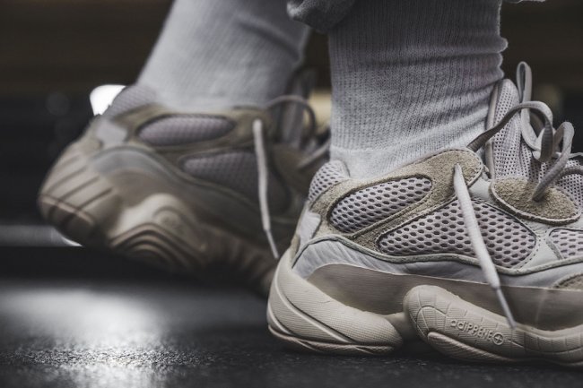 这双 Yeezy Desert Rat 500 以彻头彻尾的复古老爹鞋造型呈现,多种材质组合,鞋身和鞋底的线条动感富有活力,也颇有 “天足” 的风范。