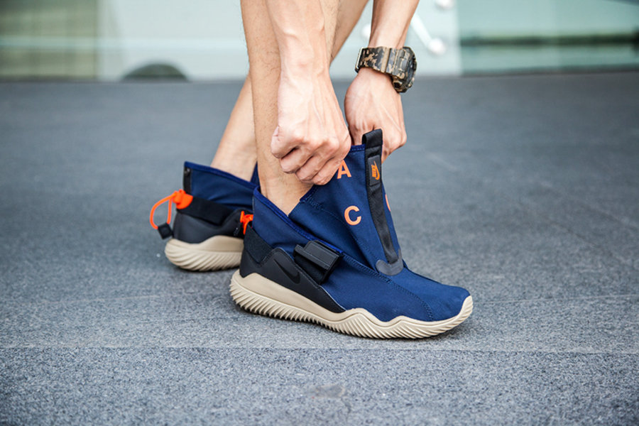 这款机能风的鞋除了适合全天候的高性能鞋面材料,鞋带系统设计也是暗藏玄机。鞋舌部分可以打开很大的角度,只需抽动鞋提上的抽绳就能快速收紧鞋面,打造出胜似自动系带的效果,搭配磁力搭扣,一连串操作也能秀翻你的小伙伴。