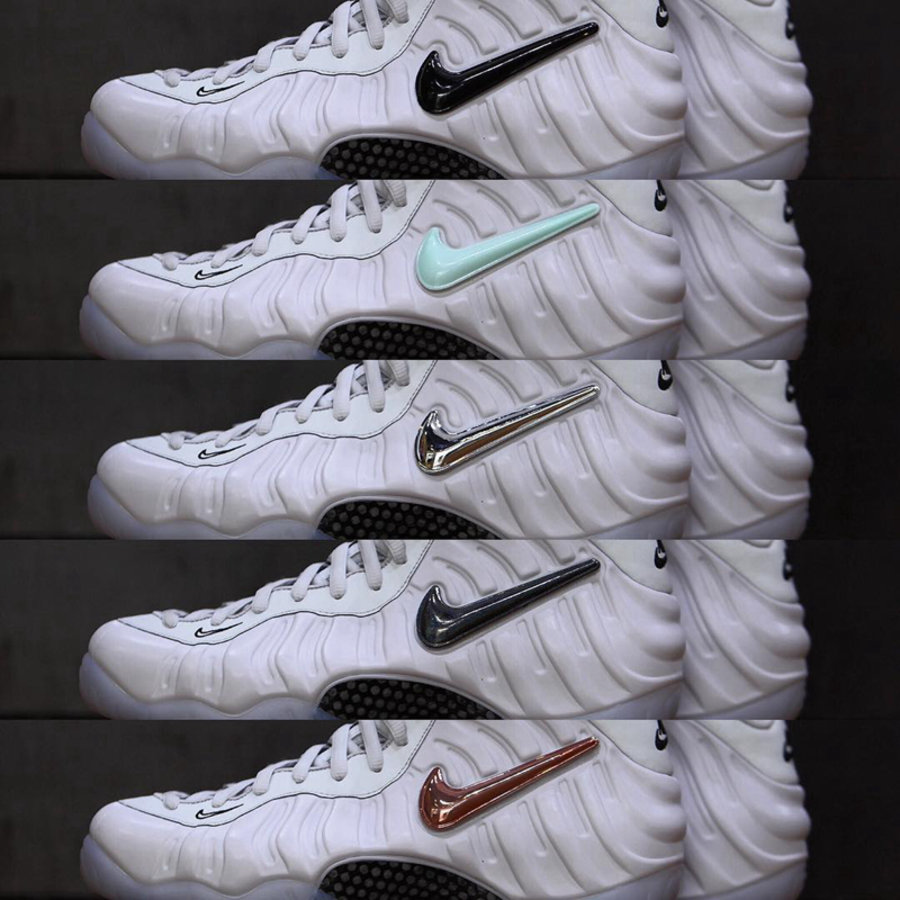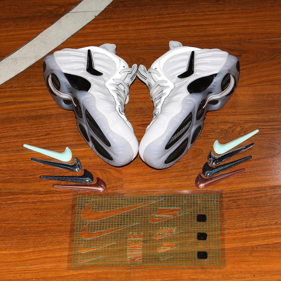 全明星期间推出的换勾泡,白色鞋身配以多款金属质感 Swoosh Logo,同时还附送亚克力绘画模板,便于进行绘画或球鞋定制。