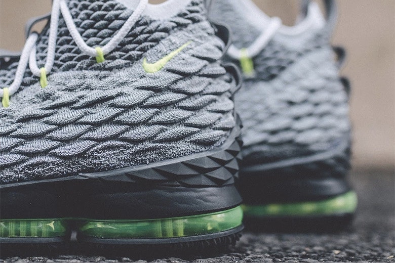 Air Max 95 是勒布朗詹姆斯儿时的最爱,也是让他最有记忆的儿时陪伴。 眼前的这双 LeBron 15 “Neon 95” 就以 Air Max 95 最经典的 Neon 配色为蓝本,将同样的装扮在 LeBron 15 鞋身上呈现,灰色和荧光色搭配,沉稳耐看又独具亮点。 鞋提上的椭圆标志也颇具 Air Max 95 的风范,让人一眼就能看出其主题来源。目前还没有发售日期,预计将在近期登陆,我们将持续关注。 image: HB