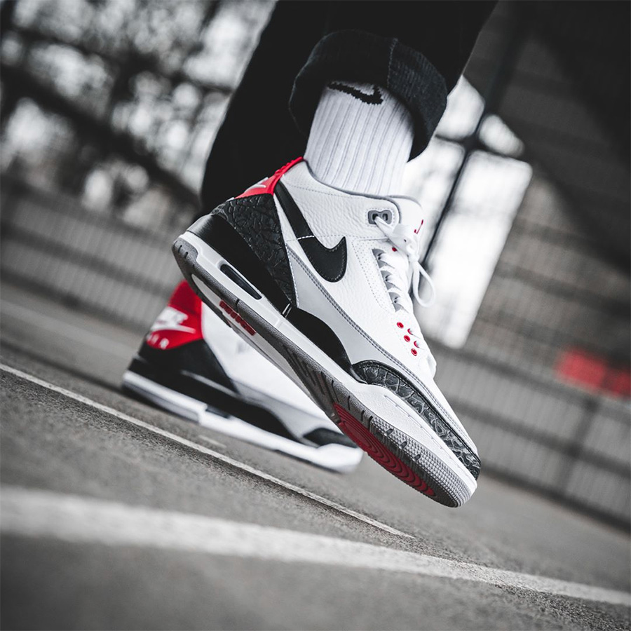 今天发售的重磅球鞋格外的多,其中的 Air Jordan 3 NRG “Tinker” 也是一双人气极高的精品款。 将 Tinker Hatfield 最初的设计手稿变成现实,眼前这个带有 Swoosh 和 NIKE 刺绣的版本,才是最初的 Air Jordan 3。 配色方面则是 Fire Red 装扮,无论从哪个角度看,都有亮眼元素的呈现。 Air Jordan 3 “Tinker” 货号:AQ3835-160 发售日期:3 月 24 日 发售价格:¥1499 RMB