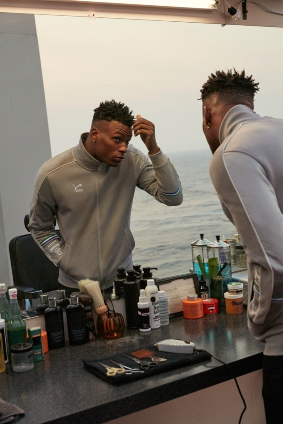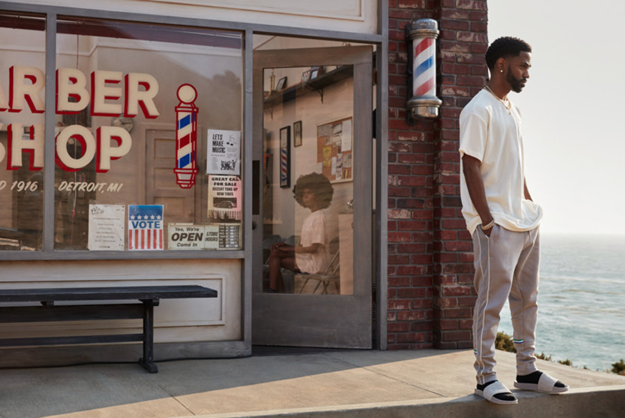 此番,PUMA 首次与著名说唱歌手 Big Sean 联手,打造双方首个联名系列。从图中可以看出此次联名系列除服饰之外,还包含了经典的 Suede 与 Clyde 鞋款。并且在两款鞋型外侧都嵌有 Sean 的签名。