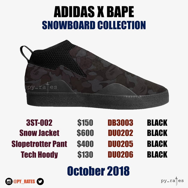 adiads 与 BAPE 的关系可谓是相当的要好,虽说双方在今年的首次联名才刚刚发售没多久,但各路爆料账号已经曝光了双方或将带来一个名为 Snow Board 的联乘系列,并称会推出鞋履、雪山服、帽衫以及裤装等单品,有兴趣的小伙伴不妨多多留意我们的后续报道!