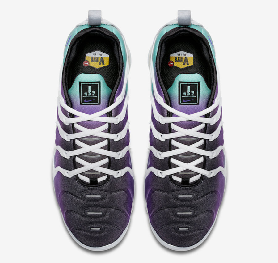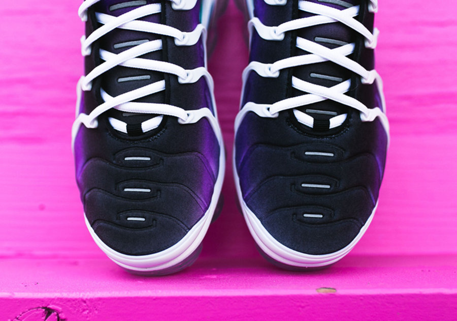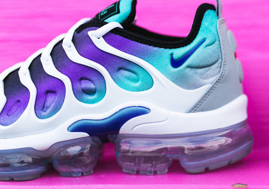 Nike Air VaporMax Plus 又推出一款渐变鞋面的紫葡萄配色。 鞋面织物部分从后至前由绿色渐变为紫色,搭配白色的笼状支撑结构和透明气垫,打造出极其清爽的视觉效果。添加发泡层的中底使鞋款比普通 Air VaporMax 更加柔软,更适合日常穿着。 将于 4 月 6 日发售,售价 $190 美元,国内发售信息请关注后续报道。 Nike Air VaporMax Plus “Grape” 货号:924453-101 发售日期:4 月 6 日 发售价格:$190 美元