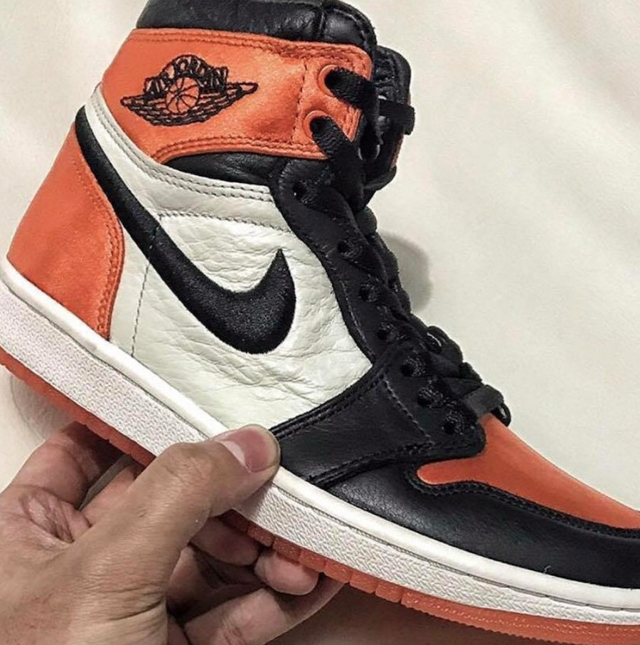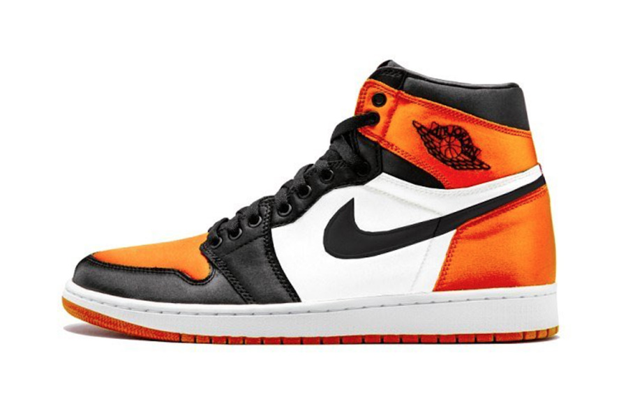 另外还有一款女生专属的 Air Jordan 1 OG WMNS Satin “Shattered Backboard”,以丝绒材质呈现了 “扣碎篮板” 配色。