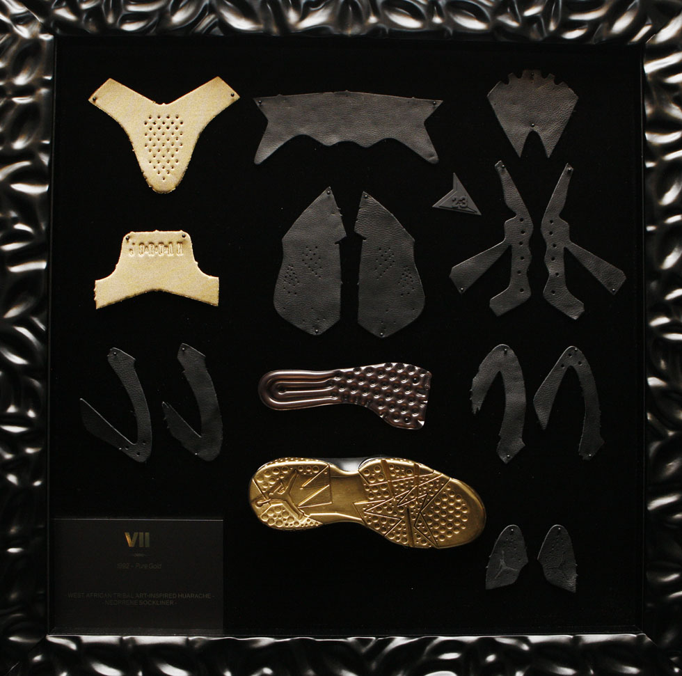引入 Huarache 轻量化理念 + 全掌内靴概念,在保持足够包裹的同时,尽可能的减轻鞋身重量。但由于 Huarache 还处在发展初期,所以 AJ7 的脚踝包裹十分松散。