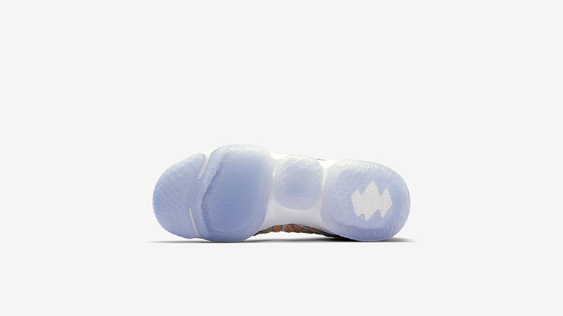 BattleKnit 编织细腻呈现出五彩斑斓的水果色气氛,后跟稳定片采用透明材质打造,呼应一席冰蓝贯穿的水晶外底,极为讨喜。无论是驰骋赛场还是日常休闲穿搭,都格外出彩,引人注目。