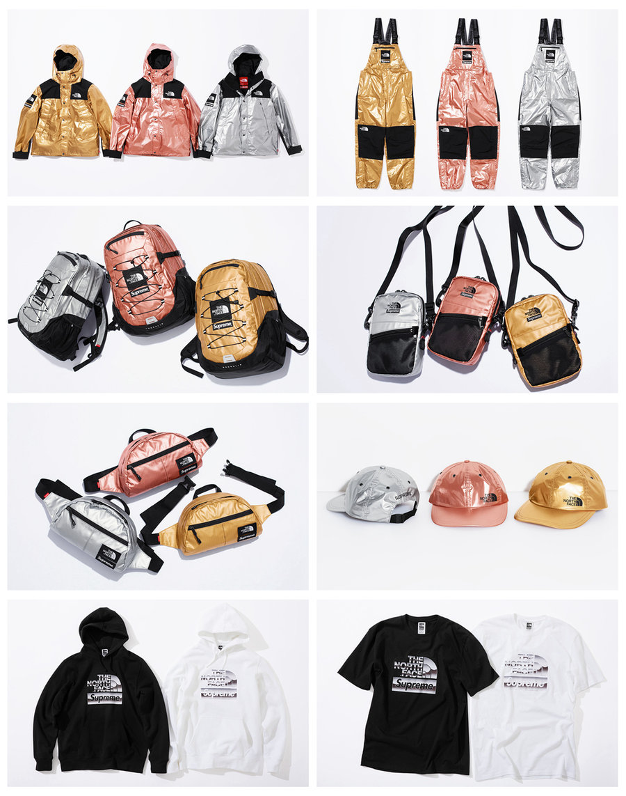 继去年秋冬带来皮质羽绒服与雪山系列后,今天 Supreme 官网正式发布了 2018 春夏联名系列!携手 The North Face 以 Metallic 金属质感为主题,带来金、银、铜三色呈现,前卫的视觉彰显,无疑为街头潮人带来独具个性的全新选择。