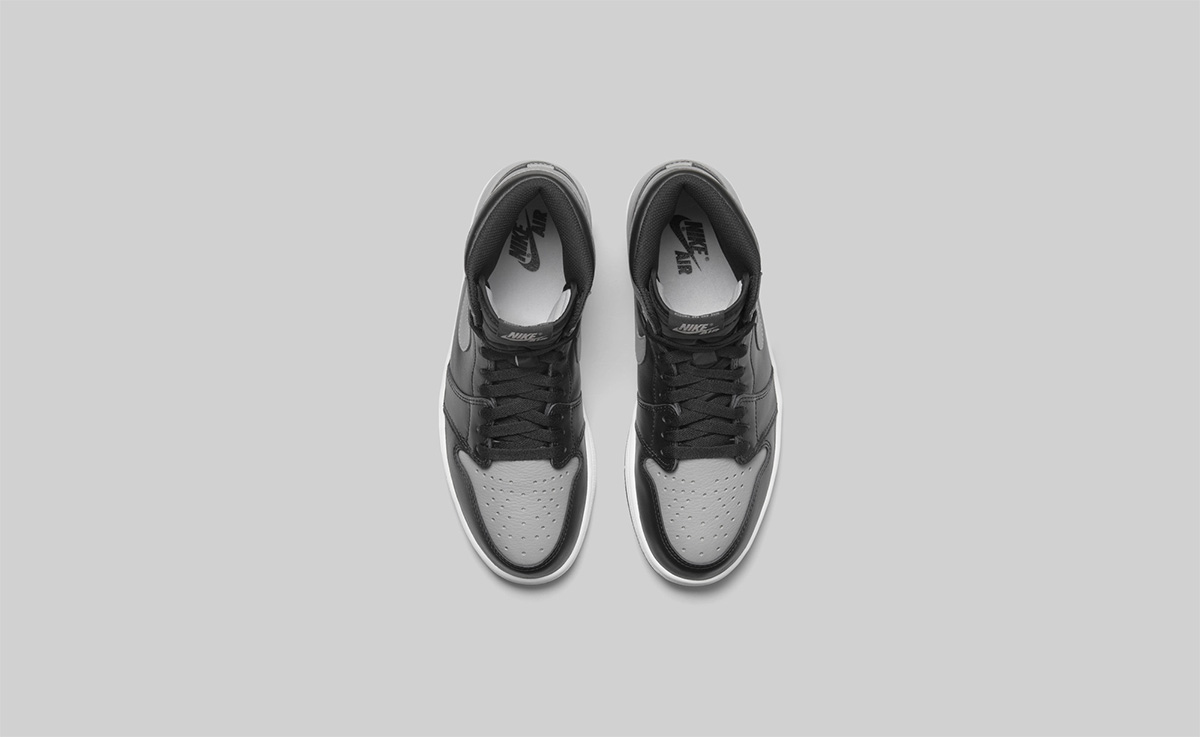 Air Jordan 1 “Shadow” 同样是人气极高的经典款式,以黑色和灰色作为基调,不仅再现了一代鞋型的独特轮廓造型,黑灰搭配也更加百搭,更加适应不同场合的穿着。