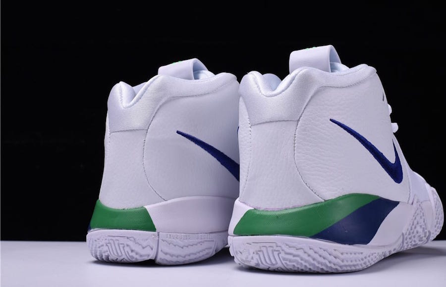 虽然因为伤病困扰,欧文不会出现在 NBA 季后赛的赛场上,但他的第四代签名球鞋仍会推出全新配色! 这双 Nike Kyrie 4 “Deep Royal” 将于 4 月 21 日进行发售,鞋面以纯白色进行渲染,Swoosh 与后跟则加入蓝色和绿色进行点缀,低调百搭中又带有一份活力! Nike Kyrie 4 “Deep Royal” 货号:943806-103 发售日期:4 月 21 日 发售价格:$120 美元