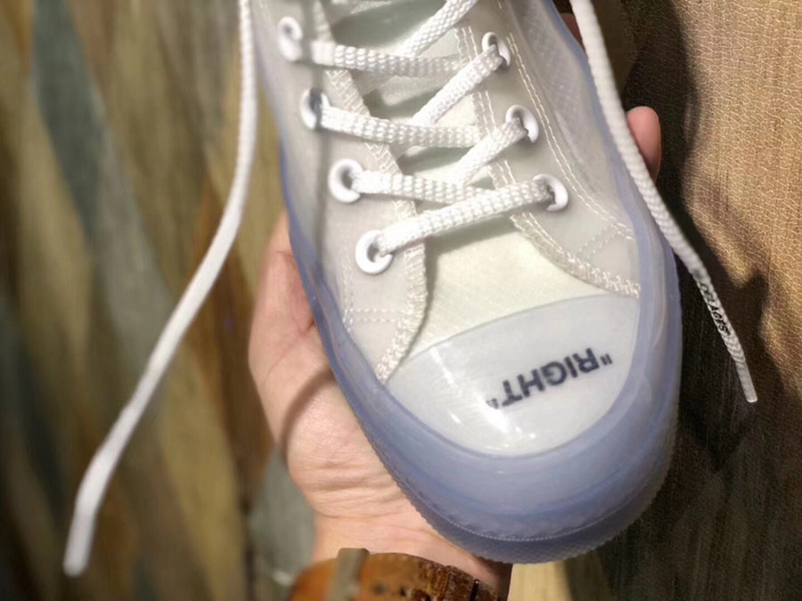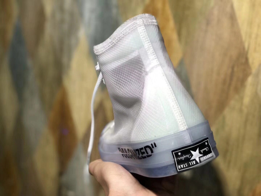 以经典的 Chuck Taylor All-Star 鞋型为蓝本,延续了 OFF-WHITE 联名系列字体标注、橙色标签和防盗扣等诸多细节,让老鞋重获新生。鞋面以独特的轻薄透明织物打造,在 OFF-WHITE 联名系列中也是极为独特的一款。