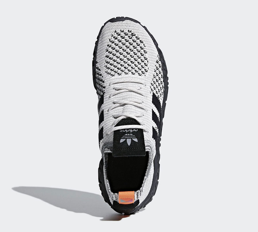 鞋款以浅灰色与黑色作为主调,后跟鞋提使用亮眼的橙色点缀,Primeknit 编织鞋面搭载户外感十足的马牌橡胶外底,足弓处还设计又稳定贴片提供支撑,上脚感受应该非常不错。