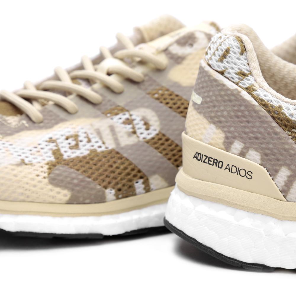 除了曝光已久的 Ultra Boost 外,作为定位更加专业的跑步鞋,AdiZero Adios 3 有着不同于 UB 的调校,沙漠迷彩之下暗藏 UNDEFEATED 字体,造型也更为前卫犀利。