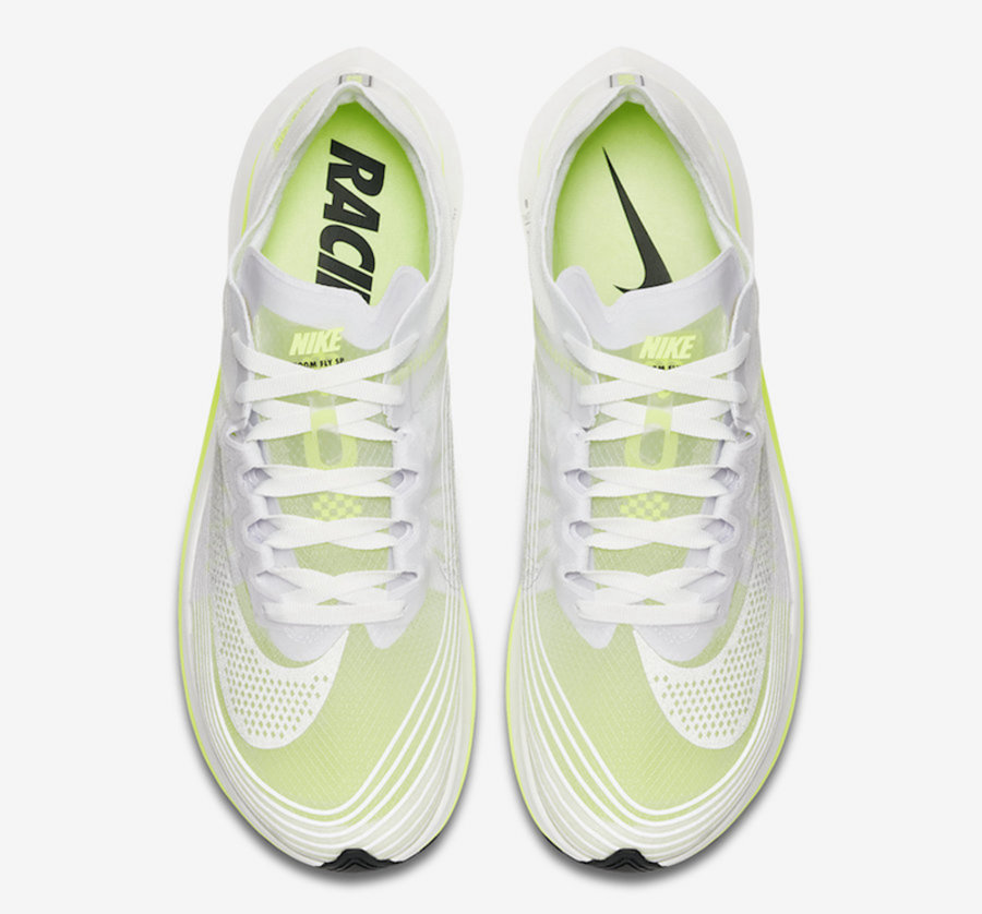 蝉翼跑鞋 Nike Zoom Fly SP 即将推出一款荧光绿配色。 鞋面依旧由薄如蝉翼的半透明材质打造,以白色为主色调,鞋垫及鞋身点缀为荧光绿色,极为亮眼。 后跟有 3M 反光材质加持,提高夜跑安全性。清爽又亮眼的超薄跑鞋,适合春夏上脚。 将于 4 月 16 日发售,售价 $150 美元。国内发售信息我们将持续关注并第一时间报道。 Nike Zoom Fly SP “Volt Glow” 货号:AJ9282-107 发售日期:4 月 16 日 发售价格:$150 美元
