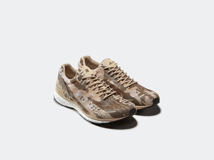 此番的联名鞋款自然是各位 Sneakerhead 关注的焦点,除了关注度极高的黑白双色 UNDEFEATED x UltraBOOST,还有以专业马拉松跑鞋 Adizero Adios 3 为蓝本的两款配色,一双以黑金渲染低调的奢华感受,一双则是沙漠迷彩装扮,辨识度非凡。
