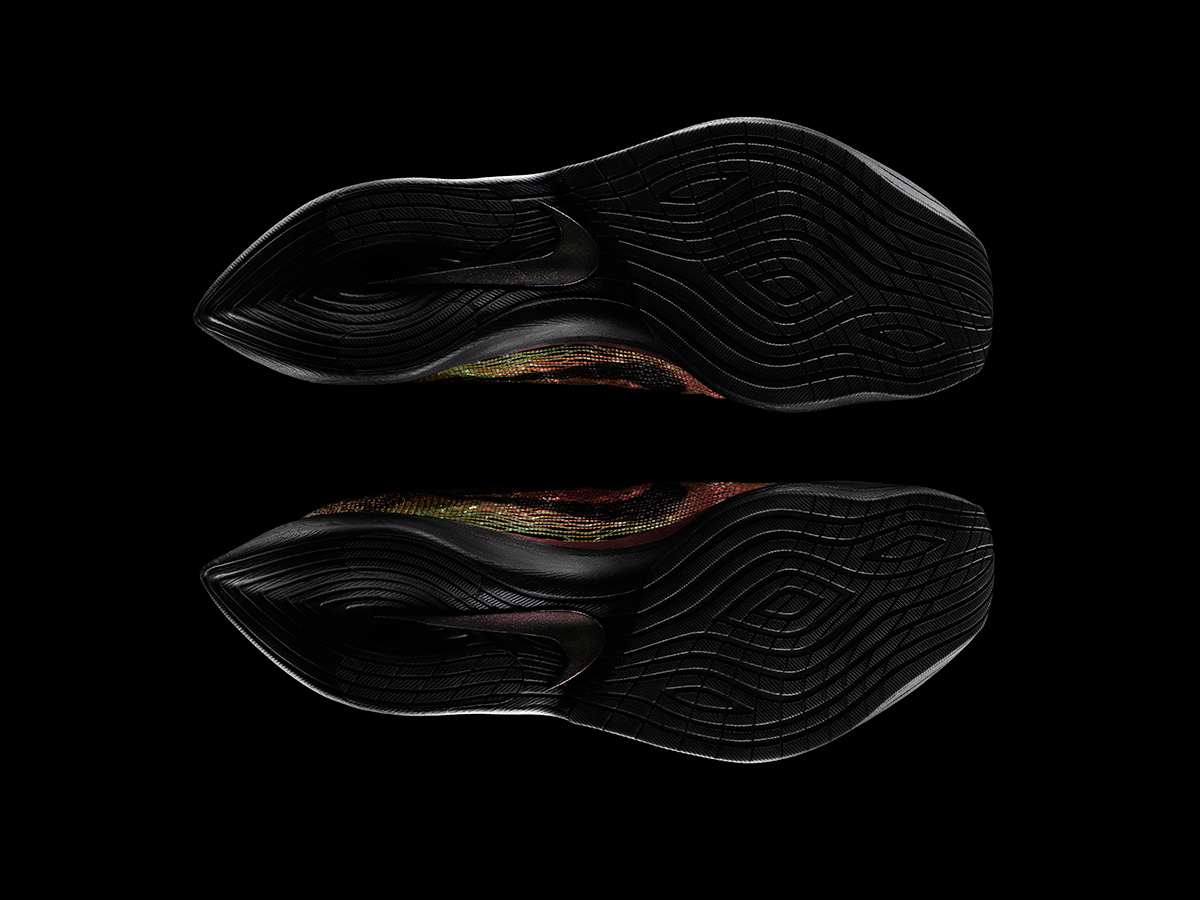这双 Nike Zoom Vaporfly Elite Flyprint 在科技方面作出了全新的突破,相比于以往 Nike 或者品牌的 3D 打印产品,此次并非解决中底方案,而是首次将 3D 打印运用到功能性鞋面。