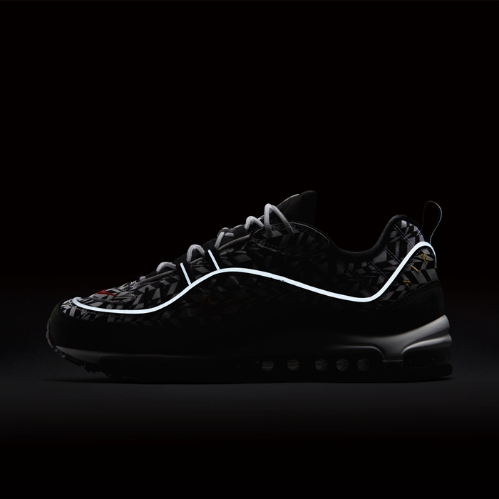 今年恰逢 Air Max 98 迎来二十周年纪念,再加上球鞋圈的复古风潮持续火热,Nike 在意料之中带来了超多的全新配色,近日一双 Nike Air Max 98 “AOP” 的惊艳亮相再次将这双经典鞋款全新演绎。 鞋面虽然以代表简约的黑白两色为主调,但几何图案的呈现方式还是让这双鞋变得非常浮夸,同时点缀橘红色 Swoosh,带来复古年代的摩登感受,最后以 3M 反光材质勾勒出鞋身轮廓,吸睛指数爆表! 鞋款目前尚未公布具体发售信息,应该会在近日正式发售,我们将持续关注并带来相关报道!