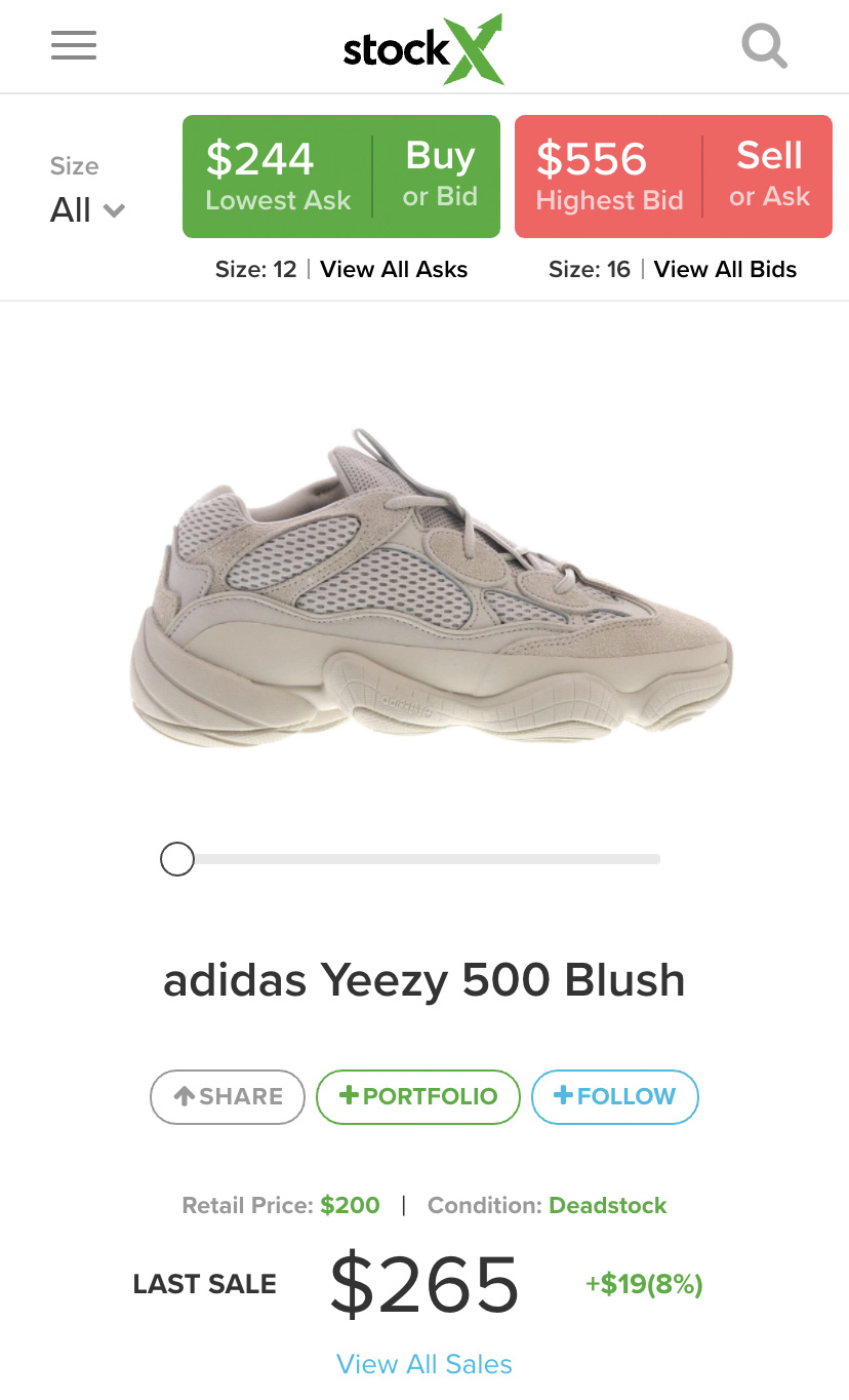 目前 Yeezy 500 Blush 在 StockX 球鞋转卖平台上的市场价为 $275 美元(发售价 $200 美元)左右,折合人民币 ¥1750 RMB,可谓是性价比极高的一款 Yeezy 了!