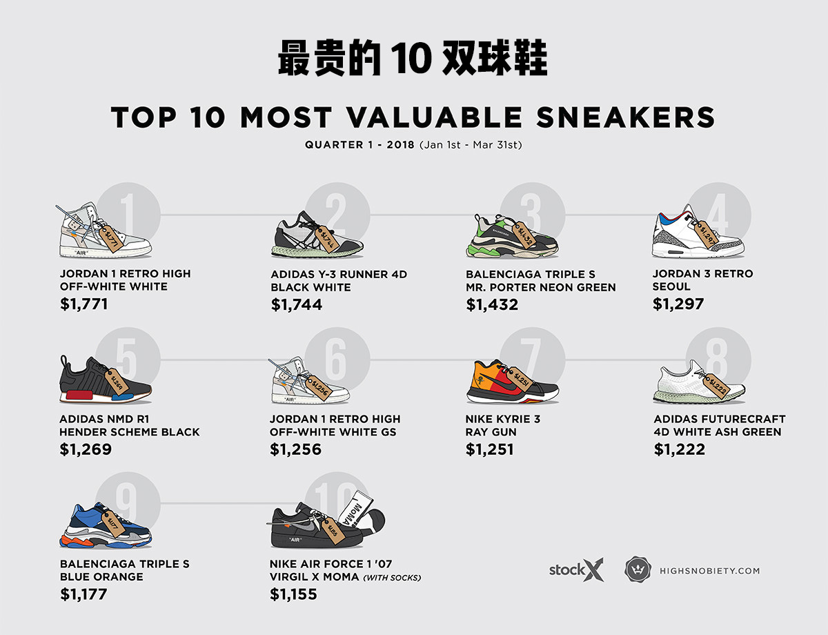 最贵的 10 双里,OFF-WHITE 是最大赢家