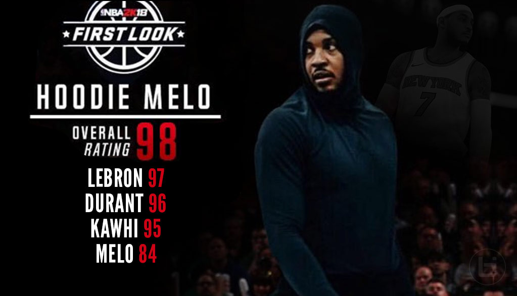 灵感来自于他对 Hoodie 帽衫令人发指的钟爱,训练穿、场下穿,记者会还穿,甚至 NBA 2K18 公布球员数值的时候,更是调皮的加入 “帽衫瓜” 人物,数值碾压众神。