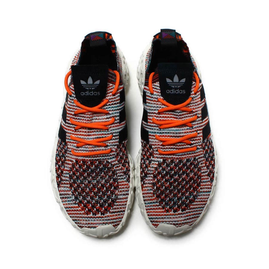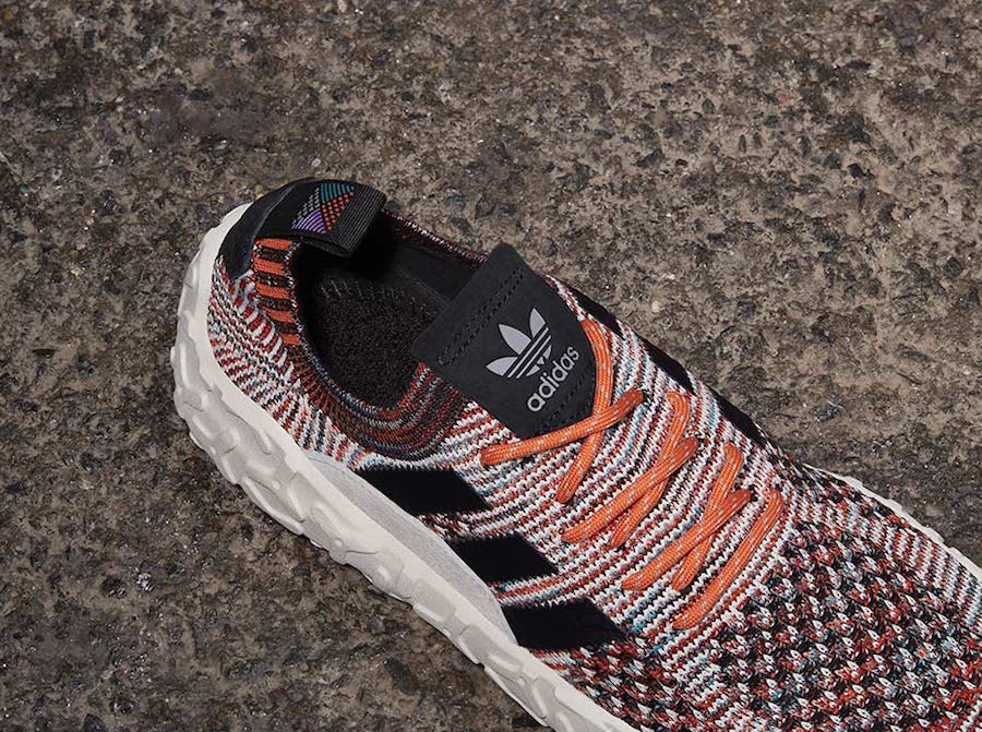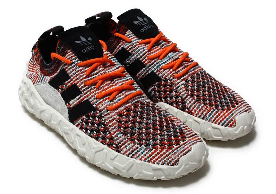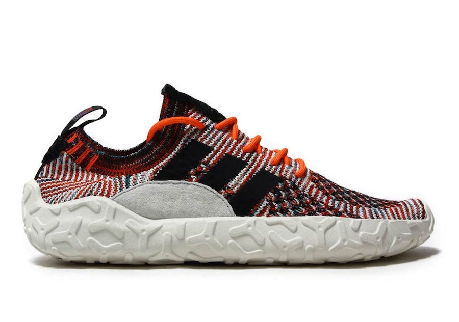 以黑白橙三色混合编织出 Primeknit 鞋面,搭载户外感十足的马牌橡胶外底,足弓处设计稳定贴片提供支撑,上脚感受应该非常不错。