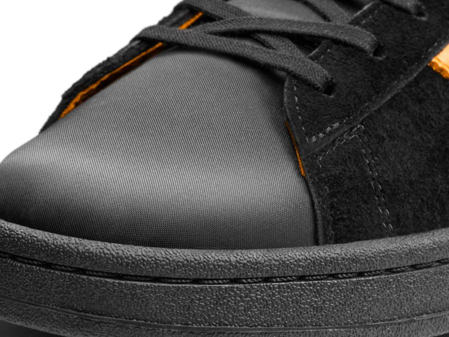 包括一款 Campus 球鞋和两款多用途包袋。Campus 鞋面由麂皮材质搭配尼龙织物打造,配色为黑色主体搭配橙色 Logo,灵感来自于飞行夹克。
