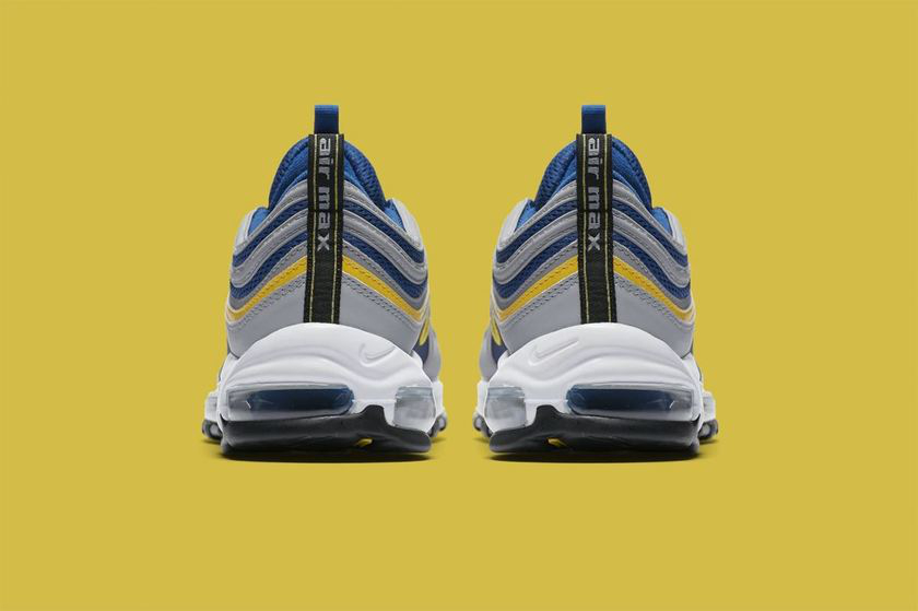 Nike Air Max 97 在去年应该人气巅峰后,持续带来新品配色,近日以美国密歇根大学为灵感带来全新 Nike Air Max 97 “Michigan”。 鞋款以灰、蓝、黄三色搭配为主调,三种颜色的搭配带有几分复古味道,3M 反光材质的波浪细节围绕四周,在黑暗中极为醒目! 该配色将于 5 月 1 日在 Nike 指定店铺发售,发售价格为 $160 美元,感兴趣的朋友可以多加关注!