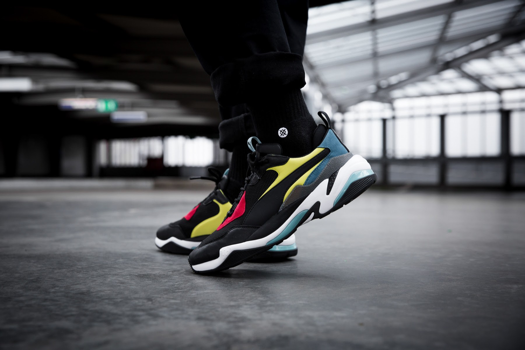 尽管黑色象征着低调,但黑色带来的酷感却能让你在人群中凸显,再加上 Puma Thunder Spectra,即便是走在城市中潮人云集的繁华街头,依旧能有超高回头率。