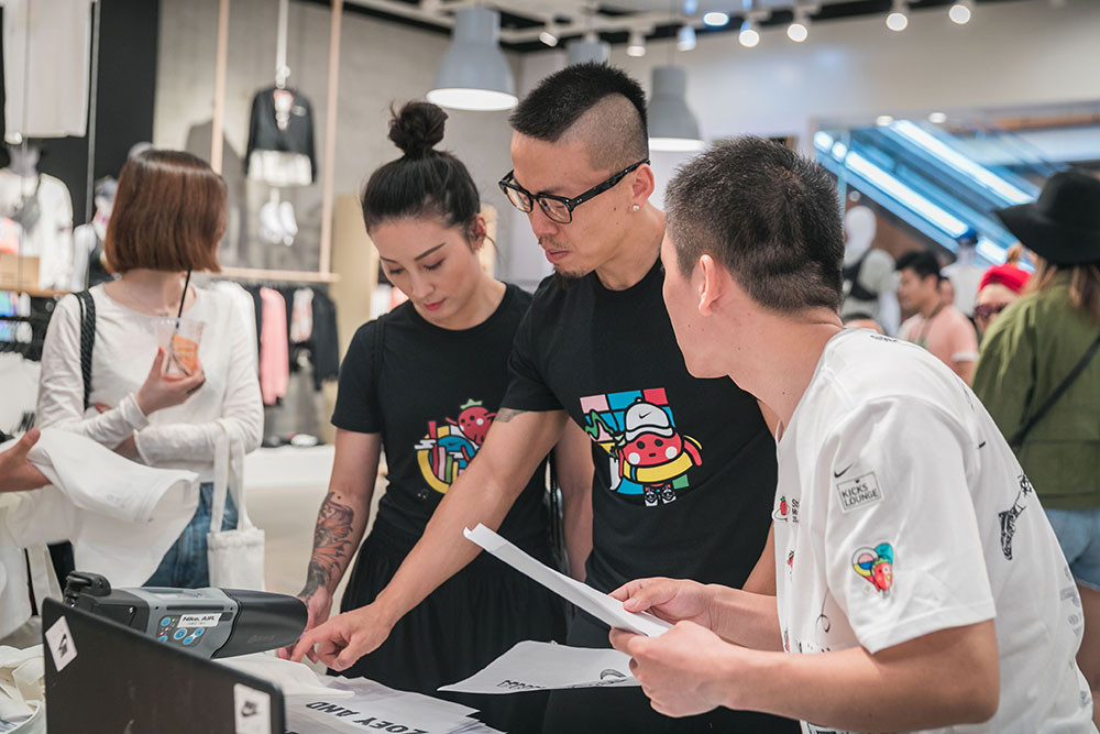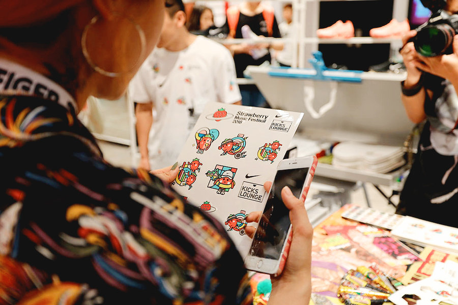 草莓音乐节与 Nike 合作 T 恤以及定制服务将在北京王府中环 Kicks Lounge、Utown Kicks Lounge 以及国贸 Nike 三家店铺上架,而新开业的王府中环 Kicks Lounge 还有独特的喷枪打印,该定制服务将限时到 5 月 1 日截止!
