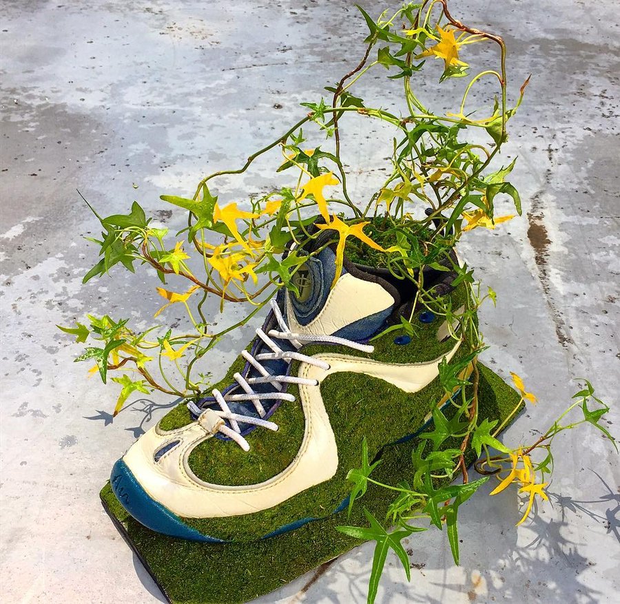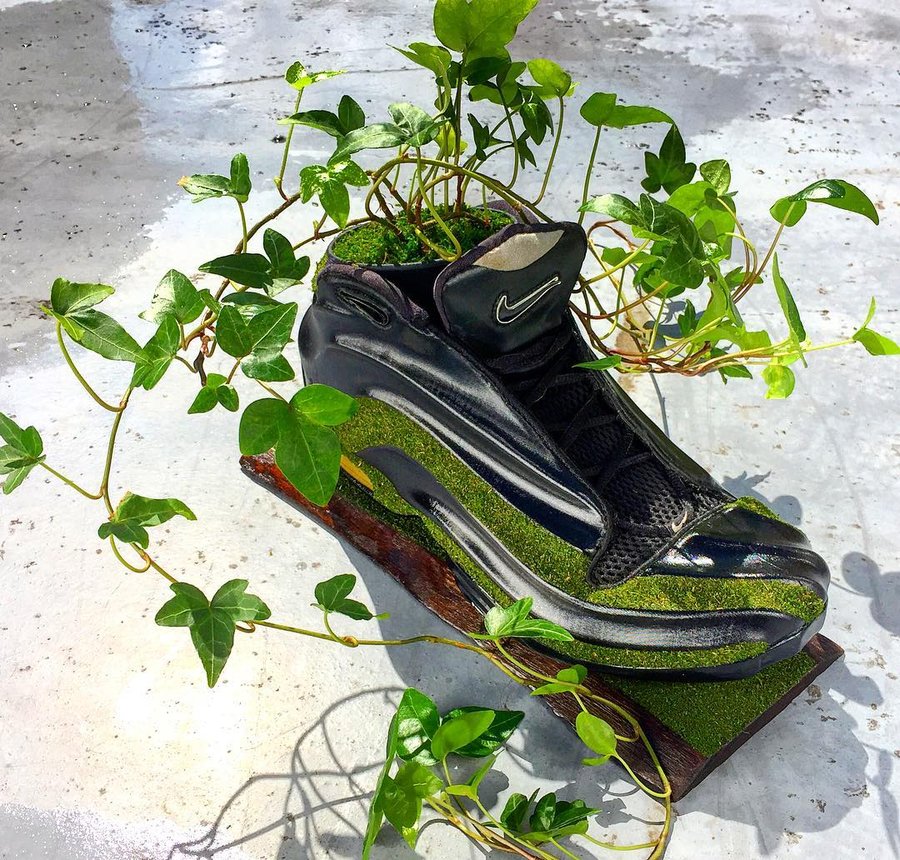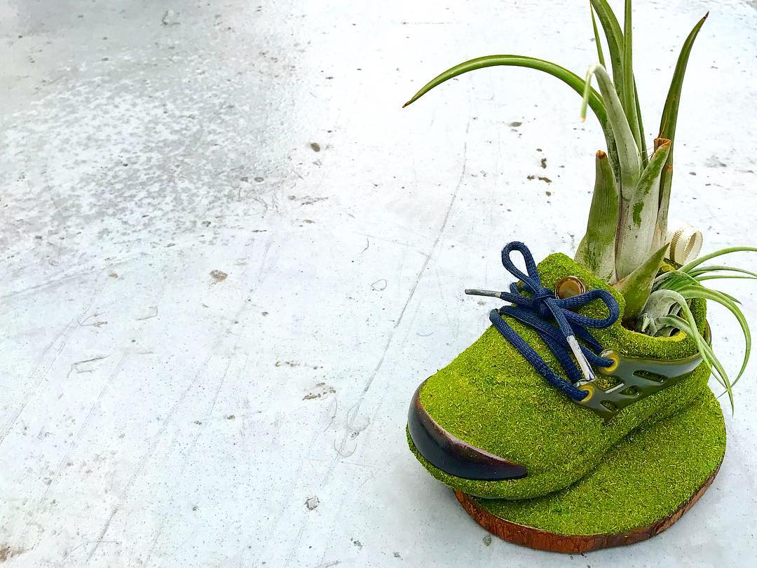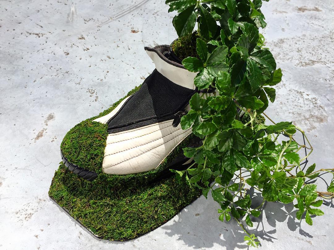 穿旧的球鞋一般你会怎样处理? 继续收藏或是扔掉 ... 来自日本的球鞋玩家 Kosuke Sugimoto 则为我们提供了另一种脑洞大开的可能! 将旧球鞋清理干净,根据个人喜好,把提前准备好的苔藓黏贴于鞋身各个部位,最后嵌入盆栽植物,简单几步就让曾经破烂不堪的球鞋,焕然一新。 摆在家中不仅营造出植物的生机活力,更彰显 Sneaker 球鞋玩家的创造力。这个成本不高,又能让球鞋变废为宝的技能,大家不妨动手试试看哟! pic via:Kosuke Sugimoto