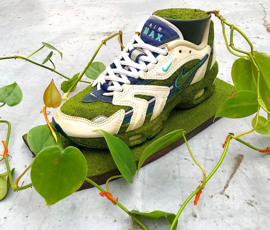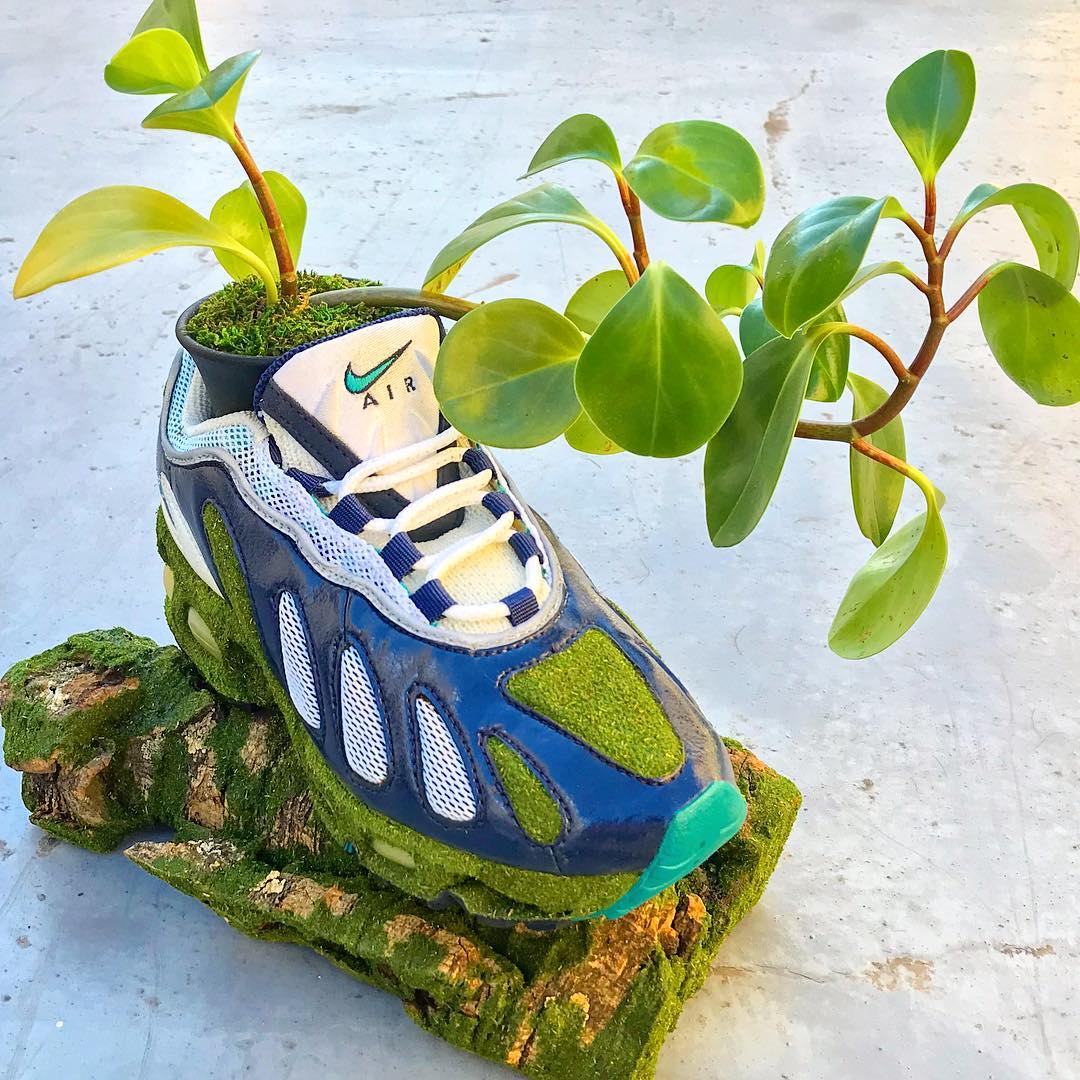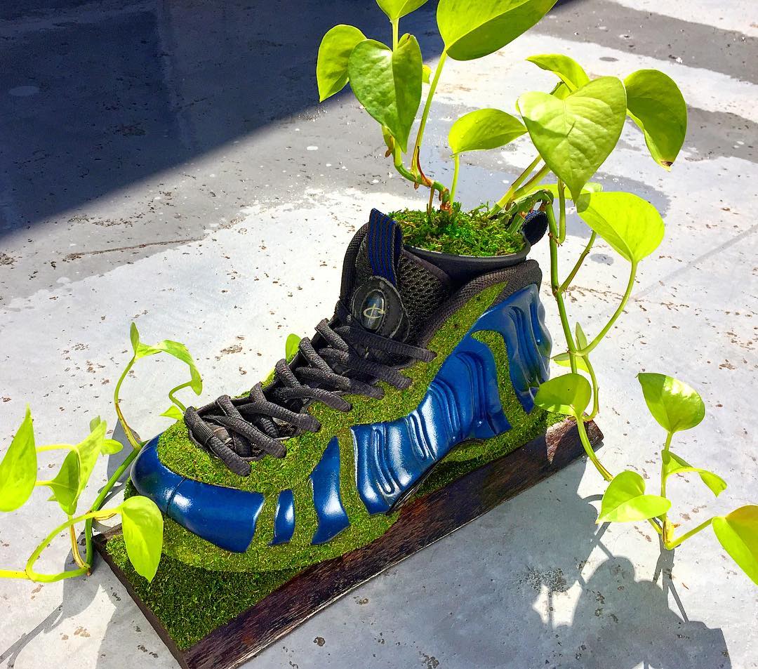 穿旧的球鞋一般你会怎样处理? 继续收藏或是扔掉 ... 来自日本的球鞋玩家 Kosuke Sugimoto 则为我们提供了另一种脑洞大开的可能! 将旧球鞋清理干净,根据个人喜好,把提前准备好的苔藓黏贴于鞋身各个部位,最后嵌入盆栽植物,简单几步就让曾经破烂不堪的球鞋,焕然一新。 摆在家中不仅营造出植物的生机活力,更彰显 Sneaker 球鞋玩家的创造力。这个成本不高,又能让球鞋变废为宝的技能,大家不妨动手试试看哟! pic via:Kosuke Sugimoto