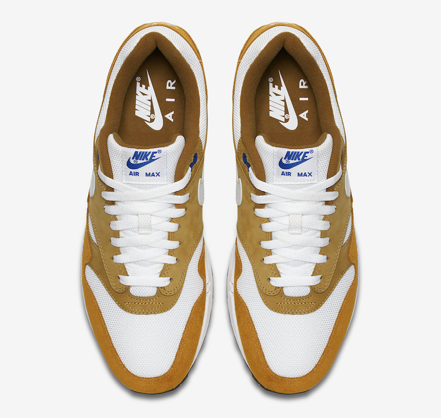 这双 Air Max 1 主要以姜黄、卡其与白色为主调,细节处加入蓝色,使用翻毛皮、麂皮与网眼打造鞋面,呈现出最典型的休闲鞋款风格,整体感觉十分清爽,辨识度表现上佳。