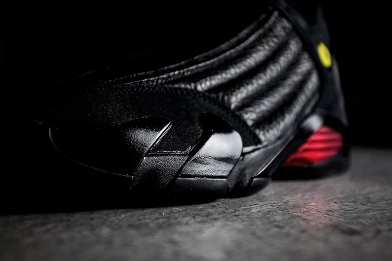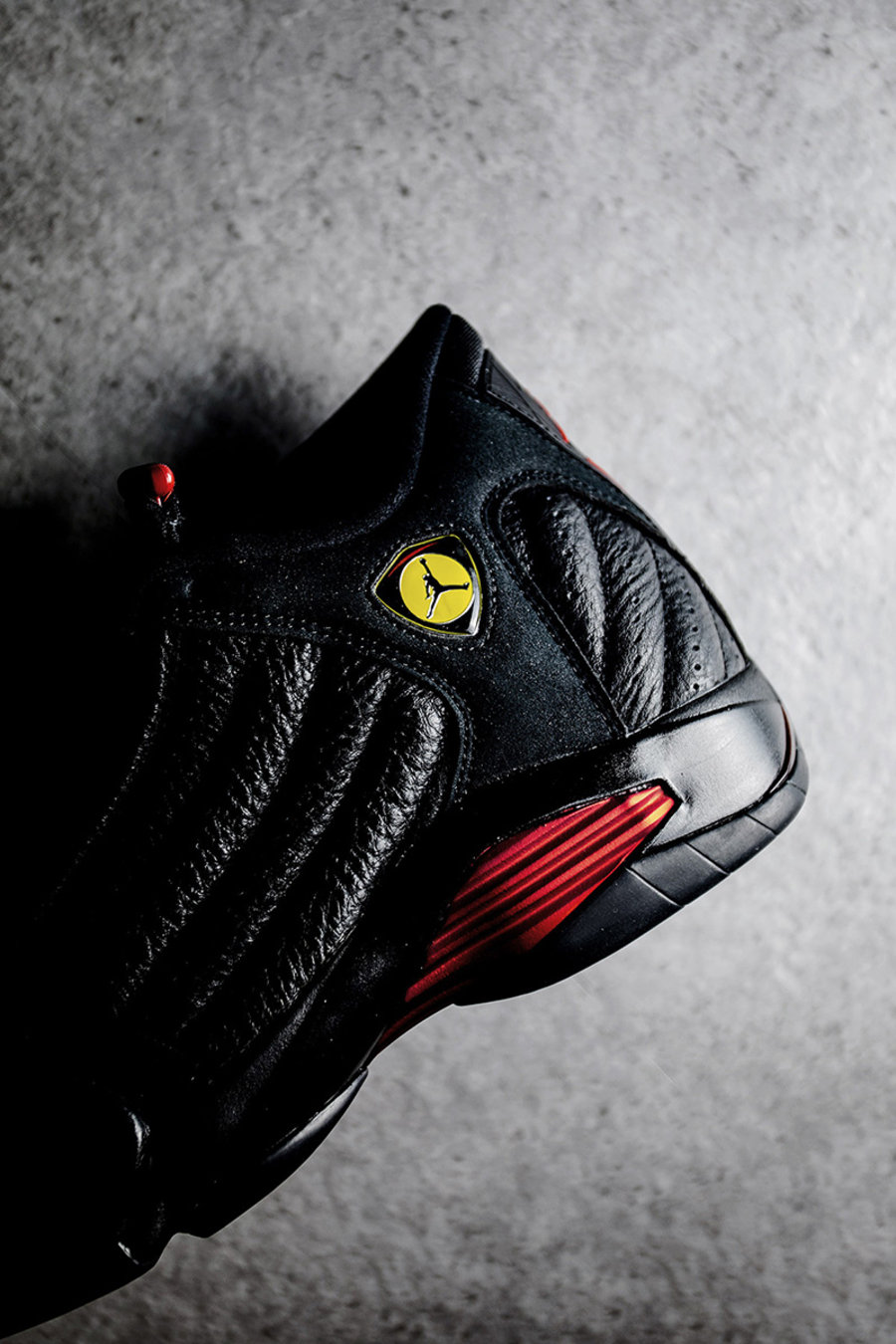 这双被称为 “最后一投” 的 Air Jordan 14 还原了 OG 元年的配置,经典的黑红配色彰显出低调又百搭的特性!整体以法拉利跑车造型作为灵感,流线感十足并将 Jumpman Logo 打造成法拉利标志样式!
