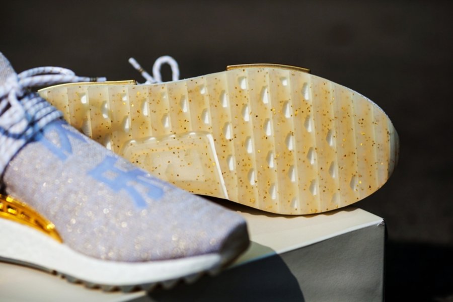 相比其他三双扎染工艺的鞋面,这双鞋确实与众不同,白色的编织鞋面中加入金线,远看有一种大地色系的古朴,近看则有满满的华贵扑面而来,绝对是一种低调地奢华。