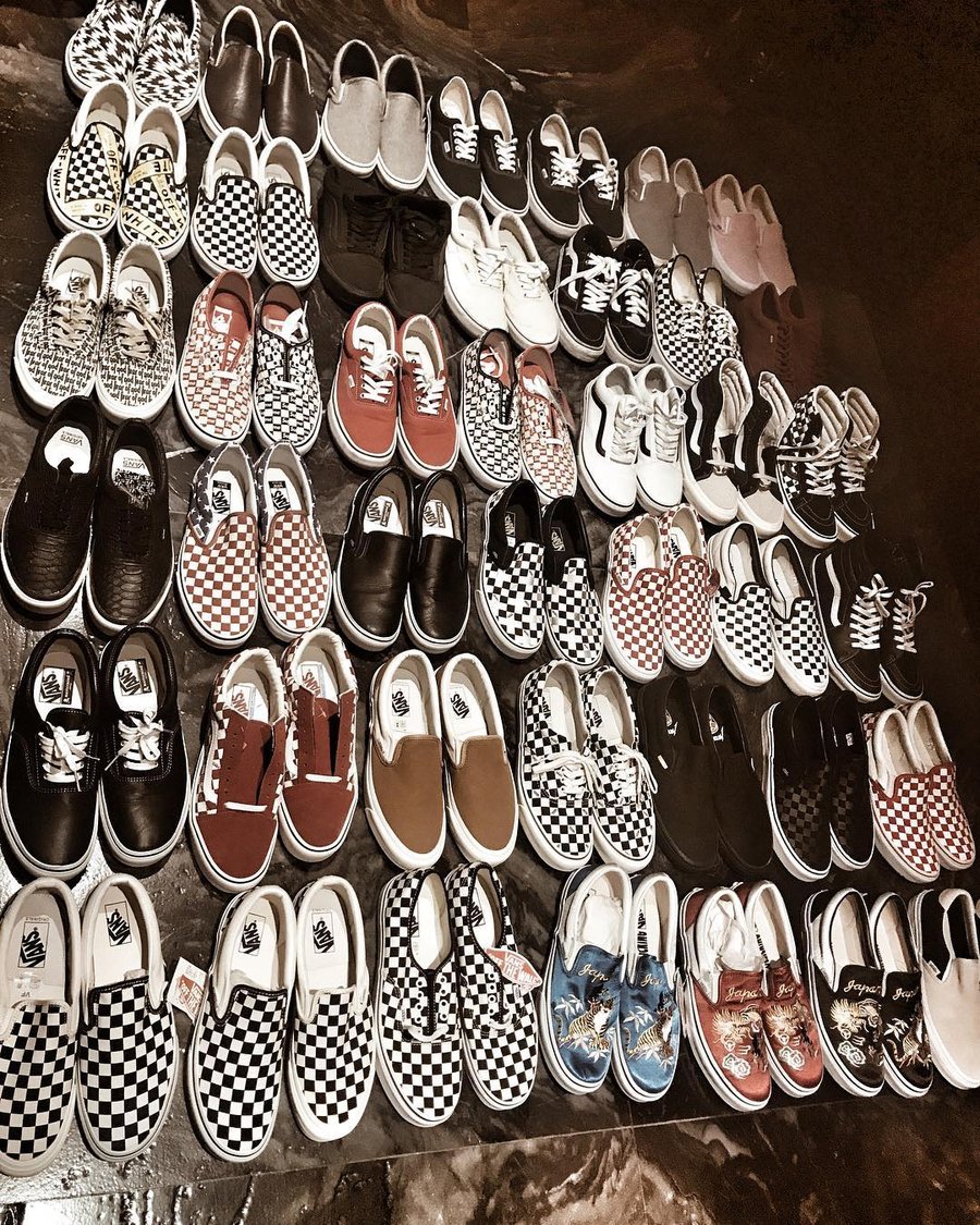 除了顶级人气的球鞋之外,“小猪” 对 Vans 同样爱得深沉,尤其是棋盘格 Slip-on 一脚蹬,同款不同色的就有几十双,如此疯狂的收藏球鞋,即便在明星中也十分罕见。