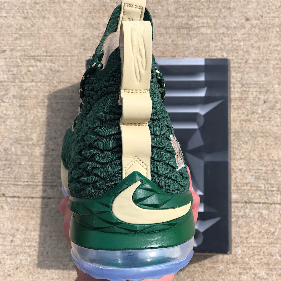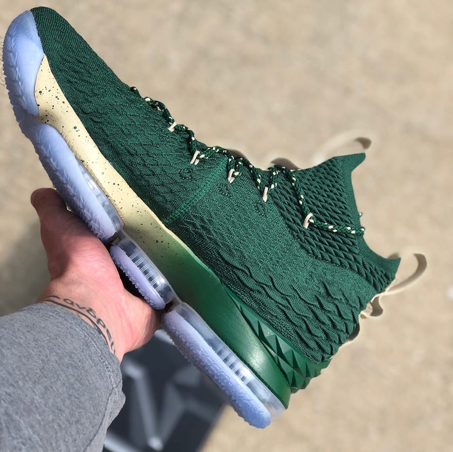 SVSM 配色是最为少见的 LeBron 主题之一,除了即将迎来 AZG SVSM 的发售外,近期还有两双 LeBron 15 PE “SVSM” 曝光,带来主场和客场配色的呈现。 一深一浅两款都是标准的 SVSM 圣文森特圣玛丽高中配色装扮,鞋帮上也都带有 IRISH 球队 LOGO,直接彰显了它的身份。 这两款 PE 配色目前没有市售的可能,想入手 SVSM 配色的朋友,不妨重点关注 AZG SVSM 的发售吧! 相关信息: >> 从未发售的高中配色!AZG “SVSM” 最新实物图赏