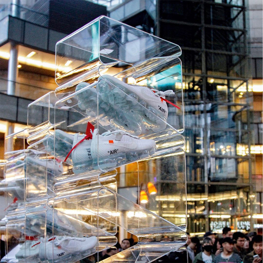 这个高透光度的亚克力立体鞋架,不仅可以高效利用空间,解决球鞋收纳的问题,它更大的优势在于对于球鞋的展示。