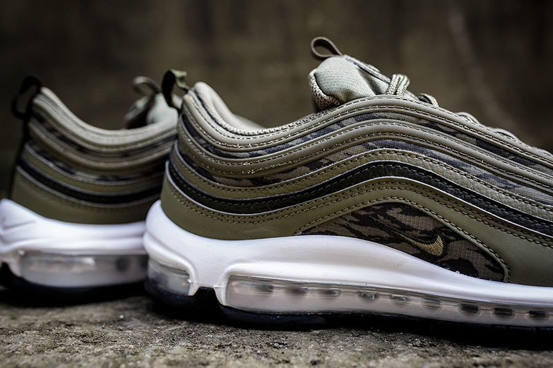 此前 Nike Air Max 97 四国迷彩套装令人印象深刻,近日又将迎来两款虎纹迷彩登场! 包含黑、绿两款配色,磨砂皮革搭配尼龙迷彩网布,配色方案较为低调,更易于日常穿搭,保留 3M 反光条,即使在弱光环境仍有醒目的视觉冲击。 目前这两款虎纹迷彩的 Nike Air Max 97 已在全球范围陆续上架,定价为 $170 美元,感兴趣的朋友不妨多加关注!