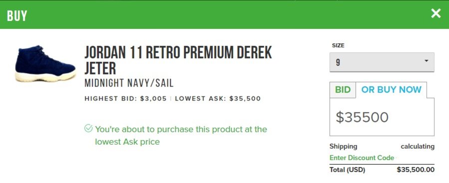 除此之外,还特别以纽约洋基队深蓝为主色,特别定制高帮版本蓝麂皮 Air Jordan 11,数量极为稀少,目前市场炒卖价格接近 4 万美元,相当于 25 万人民币!