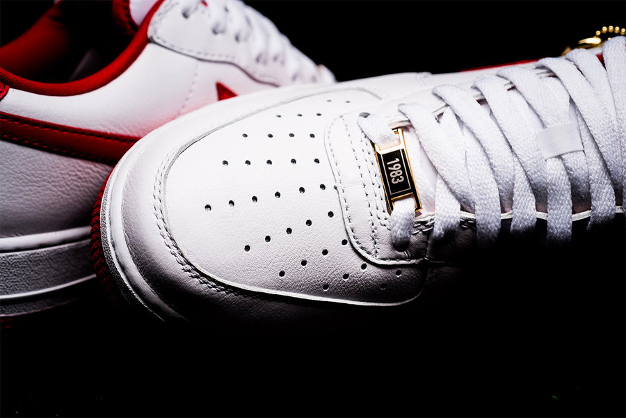 以纪念 1983 年 76 人队的第三座 NBA 总冠军奖杯为主题,马龙在对湖人的第四场比赛中,砍下 24 分 23 篮板,而他脚上的,正是这双白红装扮的 Air Force 1 Low。