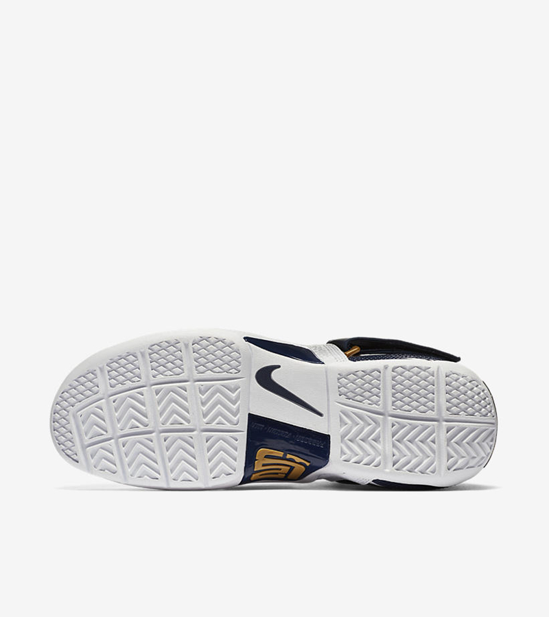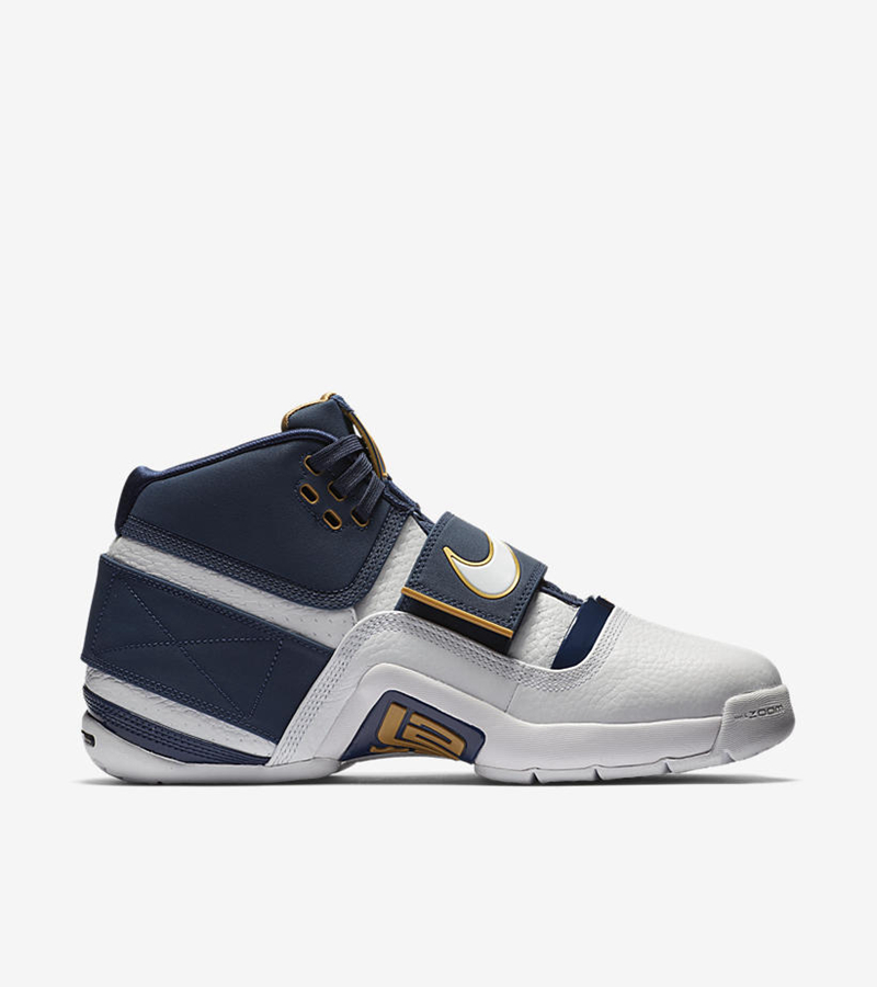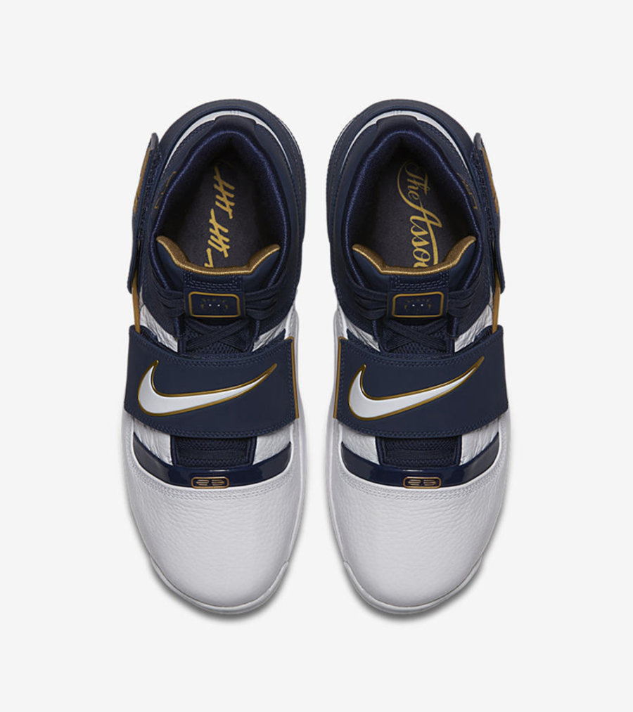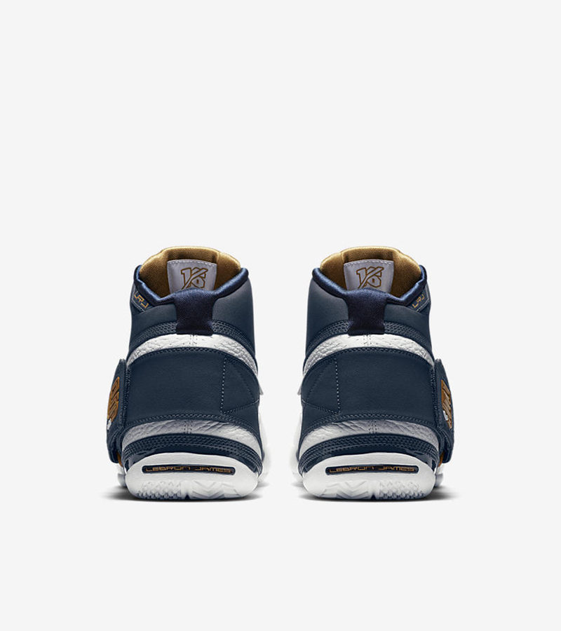 配色为白色搭配海军蓝,以金色点缀,该配色与詹姆斯 07 年总决赛亲穿 PE 相同,纪念詹皇以统治级表现杀入总决赛。