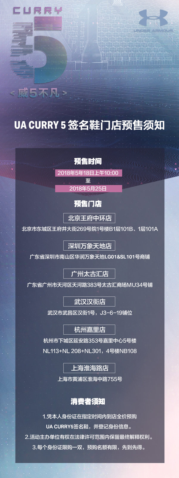 目前全新 Under Armour Curry 5 已在 UA 官方商城、UA 天猫旗舰店以及 UA 京东旗舰店开启预售,并带来全新中文版预告片。