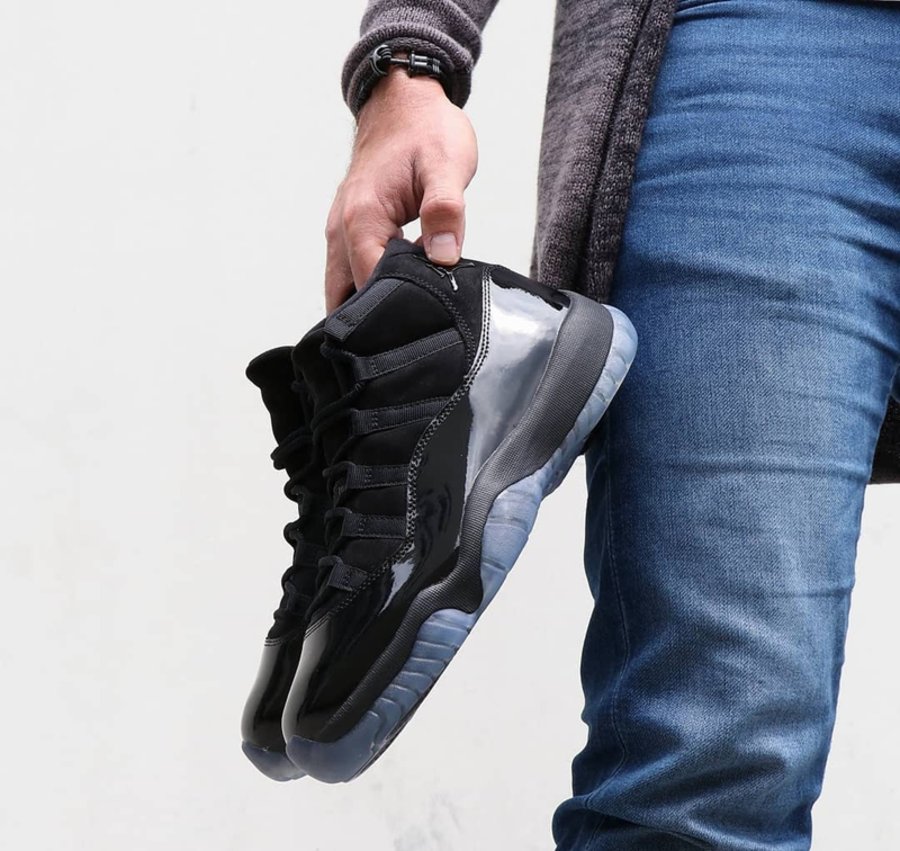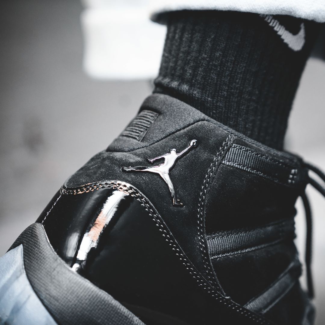 这双纯黑色的 Air Jordan 11 在曝光之初就被称为 “伽马蓝” 兄弟配色,虽然没有 “伽马蓝” 迷人的后跟点缀,但整体用料规格却更胜一筹!