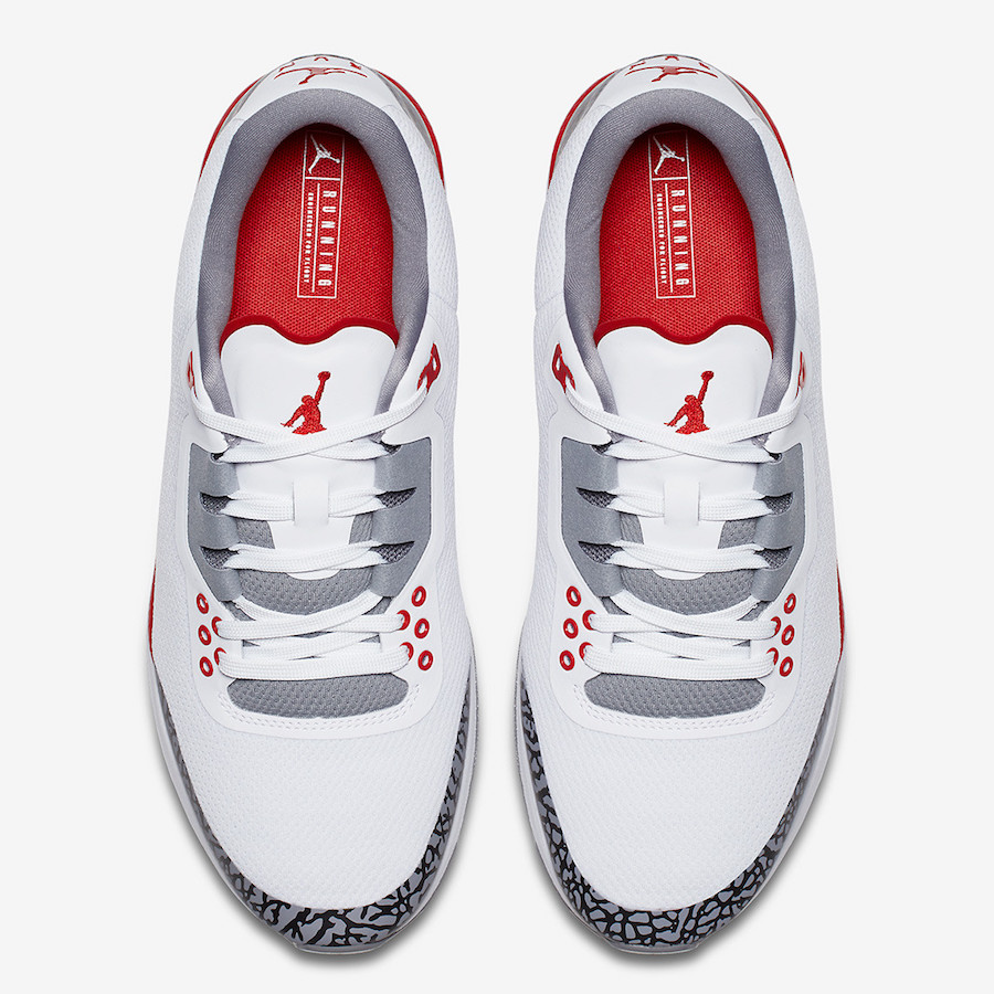 鞋身完美还原飓风配色的灰黑爆裂纹理与鲜红色彩点缀,作为 Jordan Brand 中的慢跑鞋型,透气网面构建的鞋身与中底内嵌的 Zoom Air 相结合,后跟 Jumpman 标志之下的 RUN 文字,更彰显了独特的跑鞋身份!