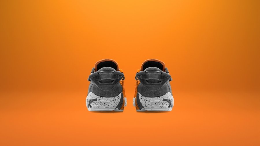 鞋身运用对比强烈的橙、灰撞色呈现,以此展现日出阳光照射大底的分界。寓意 FOSS 将迈入十周年的全新发展阶段,继续致力于成为具有世界影响力的中国潮流球鞋文化店铺。