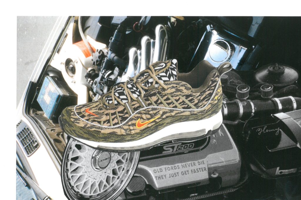 Nike 围绕复古经典鞋款 Air Max 98 打造全新 “AOP” 系列,浮夸风格让人过目不忘。 两款配色都有极强的视觉冲击,其中黑白配色整体都印有几何图形,另一双则以军绿主题的虎纹呈现,都点缀有橘红色 Swoosh,带来复古年代的摩登感受,吸睛指数爆表! 两款配色都将于 5 月 31 日正式发售,喜欢的朋友可以重点关注! Nike Air Max 98 “AOP” 货号:AQ4130-200/AQ4130-100 发售日期: 5 月 31 日