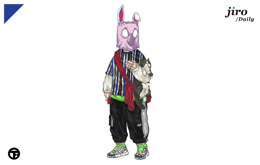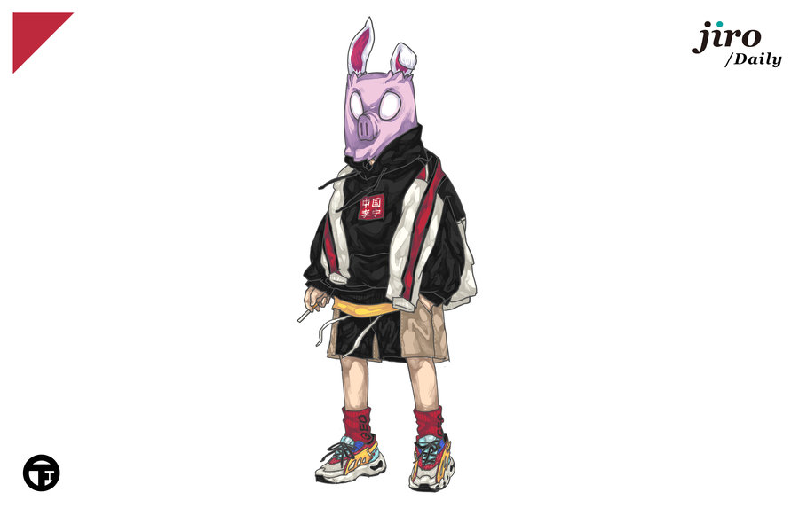 让动漫人物穿上潮流服饰的作品现在已然见怪不怪了,而这次国内艺术家 JoeNG 则是让笔下的 Jiro (一个戴着猪+兔头套的人物)穿上了国内的街头品牌。这其中包括 Randomevent、MYGE、Roaringwild、UMAMIISUM 等本土优质品牌。甚至还有今年大热的李宁也是全套上身,各位玩家对于这样的创作会打几分呢?